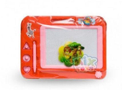 На компактній магнітній дошці, виконаної з пластика, дитина може намалювати будь-яку картину за допомогою ручки-стікера. Поле для малювання розділене на чотири кольори, що ще більше приверне увагу дитини. Для того, щоб позбавиться від малюнка, необхідно провести важіль в протилежну сторону і майданчик для малювання моментально очиститься.