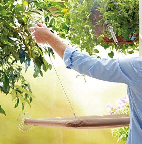 Спальне місце для кота легко збирається і за секунди кріпиться до віконного або дверного скла. Присоски надійно утримують вагу до 22 кг. Так що на лежаку може поміститися не одна кішка. Віконна ліжко для кота Sunny Seat настільки зручна, що кішка не буде заважати Вам працювати за письмовим столом, займаючи місце під настільною лампою. Домашні улюбленці з задоволенням будуть спостерігати за всім, що відбувається за вікном.